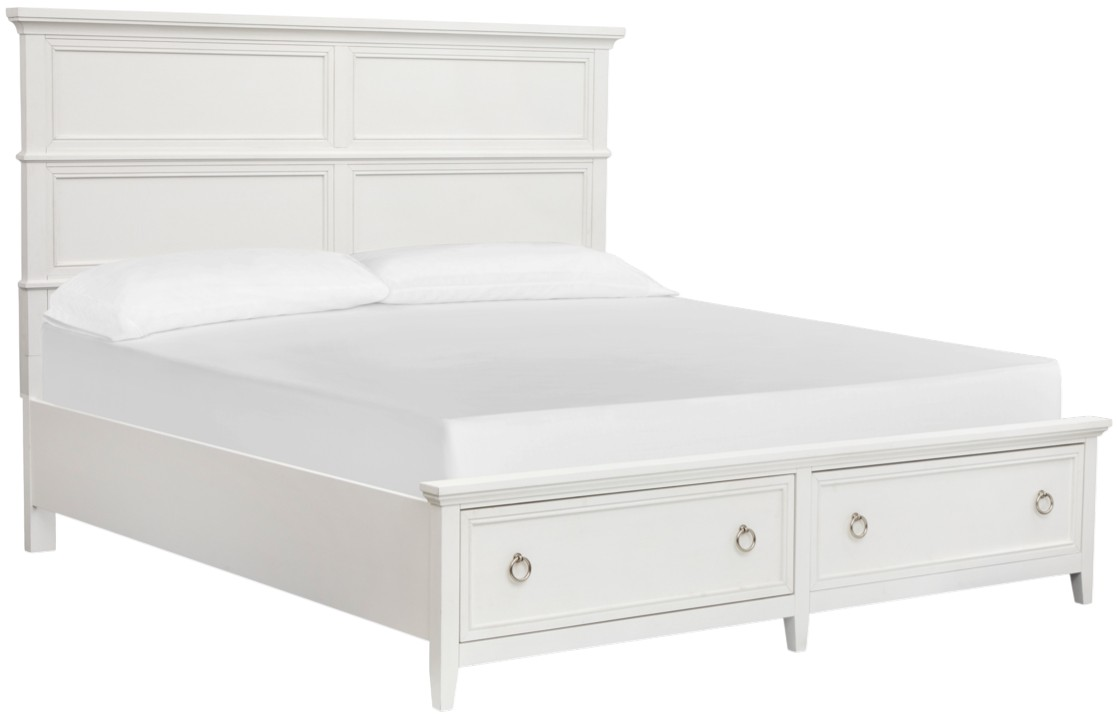 The Juniper Hill complete California King panel storage bed offers timeless elegance with its clean lines, refined panel detailing, two drawers, and crisp white finish that brightens any bedroom. Designed for durability and style, this bed creates a cozy yet sophisticated centerpiece while providing sturdy support for restful and comfortable sleep.Read More